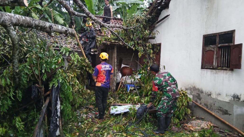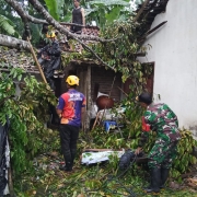Babinsa dan Warga Evakuasi Pohon Tumbang Timpa Rumah di Kecamatan Pujer Bondowoso