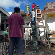 Kegiatan ini secara khusus dihadiri dan dipimpin langsung oleh Babinsa Desa Tamansari, Serka Arip Setiawan. Ia tidak hanya memantau, namun ikut serta memanjat atap, menunjukkan kedekatan TNI dengan rakyat.