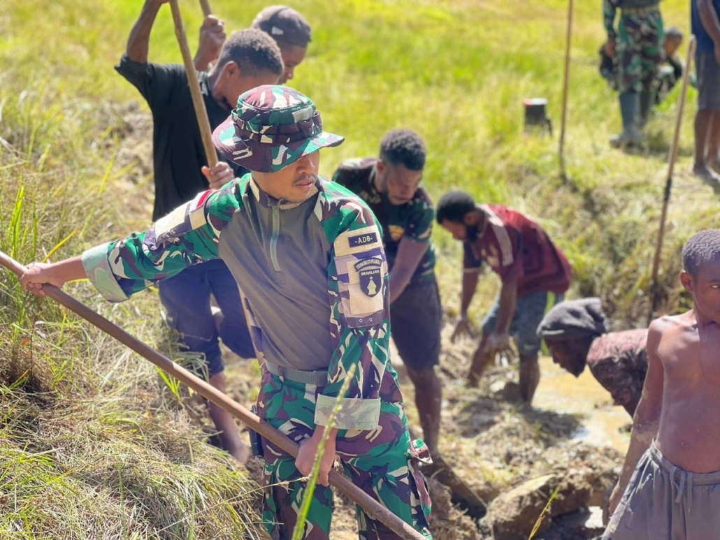 LANNY JAYA — Prajurit Pos Tima Satgas Yonif 511/Dibyatara Yodha melaksanakan karya bakti sekaligus pengamanan menjelang acara baptis jemaat Gereja Manggalome di Kampung Tima, Distrik Balingga, Kabupaten Lanny Jaya, pada Jumat 21 November 2025. Kegiatan ini menjadi bentuk dukungan nyata terhadap kebutuhan masyarakat setempat.