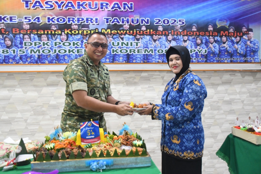 MOJOKERTO – PNS Sub Unit Kodim 0815/Mojokerto menggelar tasyakuran HUT ke-54 Korpri sebagai wujud memperkuat silaturahmi internal serta memantapkan komitmen pengabdian aparatur, Selasa (02/12/2025). Kegiatan ini dirangkaikan dengan anjangsana, selaras tema nasional Bersatu, Berdaulat, Bersama Korpri Mewujudkan Indonesia Maju, sebagai bentuk penghormatan kepada para senior.
