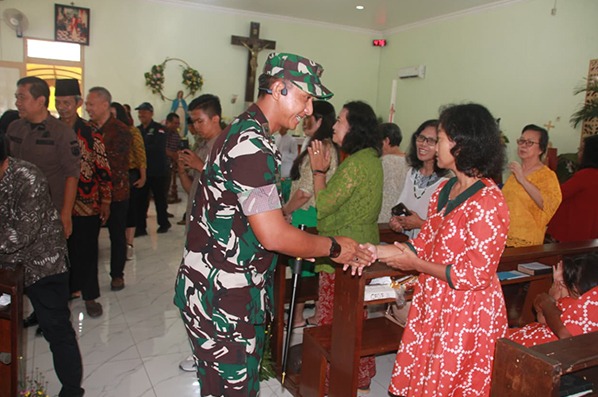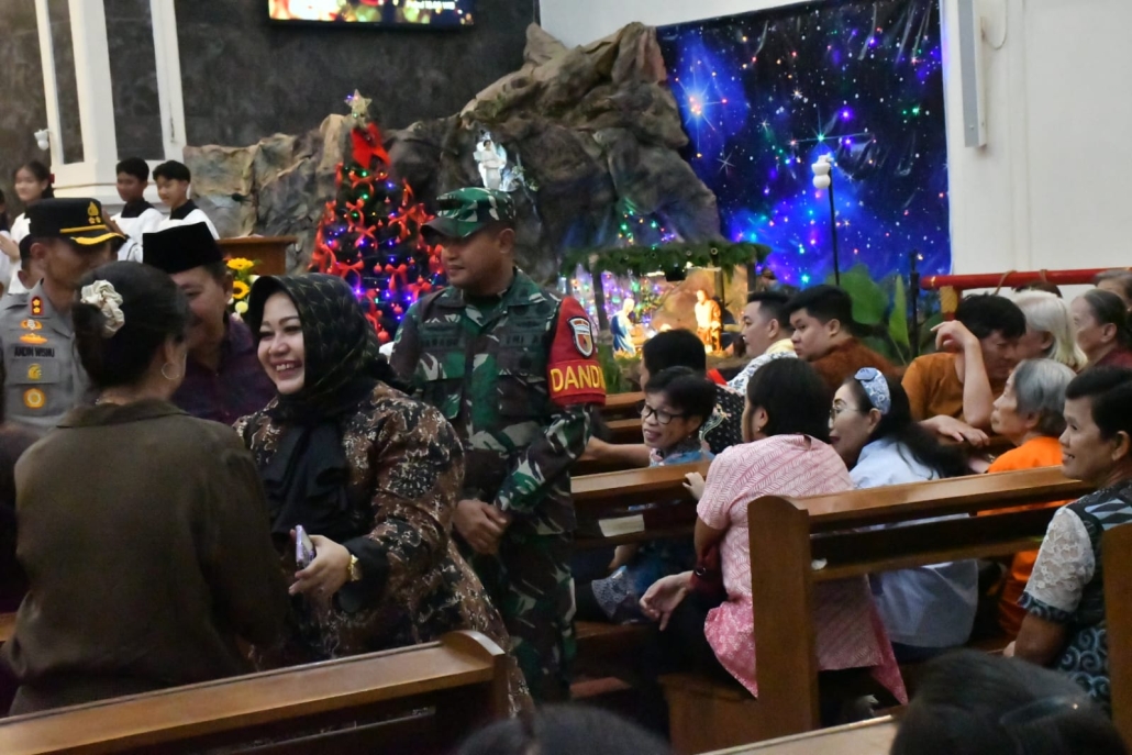LANNY JAYA – Dansatgas Letkol Inf Amar Supratman bersama Danpos Malagai Kapten Inf Sena Nurjabbar, S.Tr(Han) Satgas Yonif 511/DY melakukan kunjungan ke Gereja Pinime pada perayaan Hari Natal. Kunjungan ini bertujuan memastikan pelaksanaan ibadah Natal berjalan aman, tertib, dan kondusif.