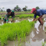 Ngawi – Pembinaan Teritorial dalam mewujudkan ketahanan pangan di wilayah terus ditingkatkan, Seperti yang dilakukan Serda Gaip Babinsa Koramil 0805/06 Kwadungan Kodim 0805/Ngawi dengan turun langsung ke sawah mendampingi kegiatan petani dalam kegiatan pendampingan perawatan tanam padi yang berada di Desa Budug Kec. Kwadungan Kab. Ngawi, Selasa (14/1/2025).