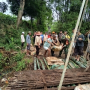 Satgas Yonif 511/DY Bantu Masyarakat Desa Lowanom dalam Membangun Gereja