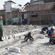 JOMBANG — Babinsa Koramil 0814-07/Kabuh Kodim 0814/Jombang Sertu Shopi Marwan melaksanakan karya bakti membantu pembangunan rumah warga Desa Banjardowo Kecamatan Kabuh Kabupaten Jombang sebagai bentuk kepedulian nyata TNI AD terhadap kesejahteraan masyarakat binaan wilayah teritorial.