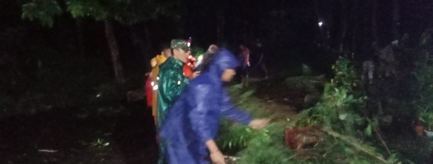 Bondowoso – Hujan deras yang melanda Kecamatan Grujugan, Bondowoso. Mengakibatkan pohon Lamtoro tumbang di Dusun Congkrong Barat, Desa Taman. Kejadian ini sempat menutup akses jalan menuju Pemandian Tasnan. Babinsa Koramil 0822/08 Grujugan, Sertu Slamet S, bersama tim gabungan bergerak cepat untuk menanggulangi dampak bencana tersebut.