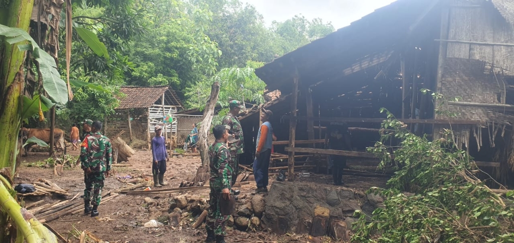 Madiun, – Anggota Koramil 0803-06 Gemarang, yang dipimpin oleh Serka Sukarwan, melaksanakan kegiatan karya bakti membersihkan lingkungan yang terkena lumpur pasca meluapnya air Sungai Dungdes di wilayah Desa Sebayi, Kecamatan Gemarang, Kabupaten Madiun. Kegiatan ini dilakukan untuk mengatasi dampak bencana alam dan membantu masyarakat yang terdampak banjir, terutama dalam membersihkan lumpur yang menggenangi rumah dan area sekitar.
