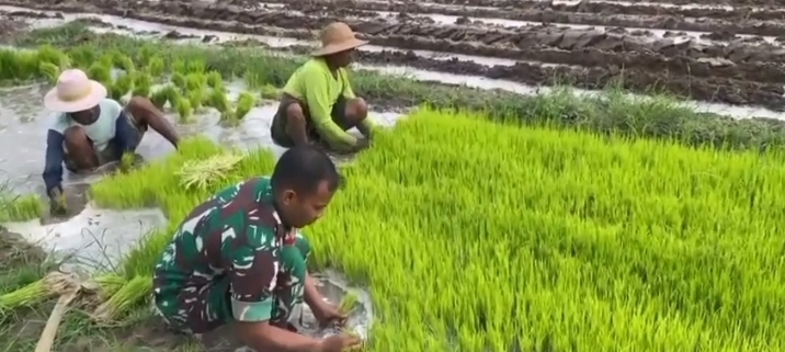Pada kegiatan ini, Serda Faiqurrahman membantu Zainal (50), pemilik lahan sawah seluas 1 hektare, dalam proses pencabutan benih padi yang siap tanam. Langkah ini bertujuan untuk mempercepat proses penanaman sekaligus memastikan bibit padi terkelola dengan baik.