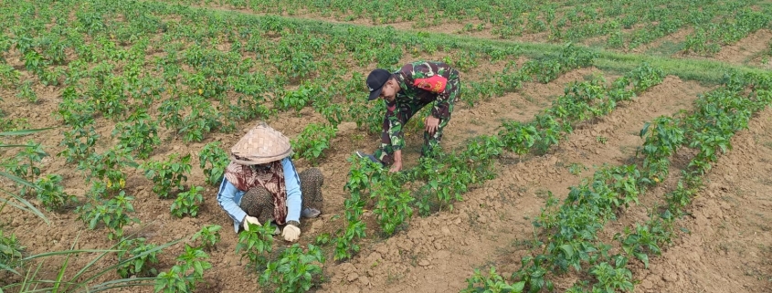 Babinsa Ambunten Jalin Silaturahmi, Bantu Petani di Kebun Cabai