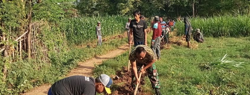 Babinsa Arjasa dan Warga Gotong Royong Bangun Saluran Air Hadapi Musim Hujan