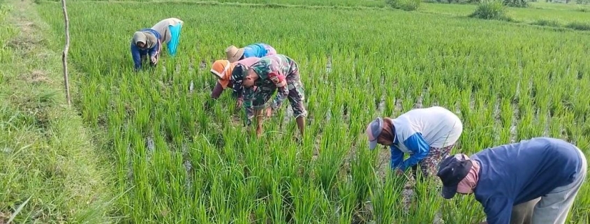 PAMEKASAN – Dalam upaya mendukung ketahanan pangan, Babinsa Bandungan, Serda M. Nur Hidayat, aktif melaksanakan pendampingan terhadap petani di wilayah tugasnya. Salah satu kegiatan yang dilakukannya adalah membantu Sumiati, seorang petani di Dusun Sumber Balang, Desa Bandungan, Kecamatan Pakong, untuk merawat tanaman padinya.
