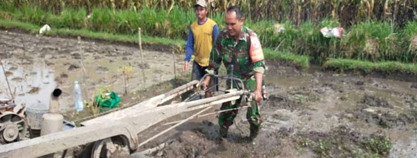 Babinsa Bendogerit Bantu Petani Siapkan Lahan untuk Penanaman Padi