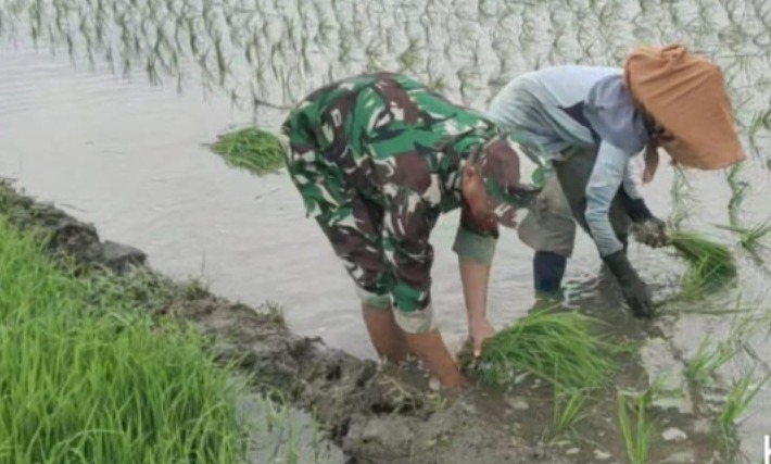 Babinsa Berperan dalam Pertanian: Pendampingan Penanaman Padi di Tulungagung