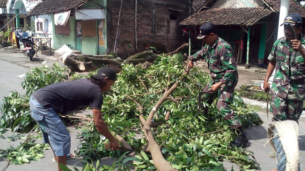 Babinsa Bersama Warga Antisipasi Bahaya Angin Kencang Melalui Penebangan Pohon Berisiko