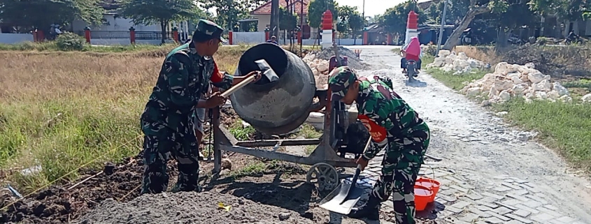 Lamongan, – Segenap Bintara Pembina Desa (Babinsa) dari Koramil 0812/07 Bluluk, Kodim 0812/Lamongan, bersama-sama dengan warga Dusun Suren, Desa Bluluk, Kecamatan Bluluk, melaksanakan kegiatan Karya Bakti pembuatan Tembok Penahan Tanah (TPT).