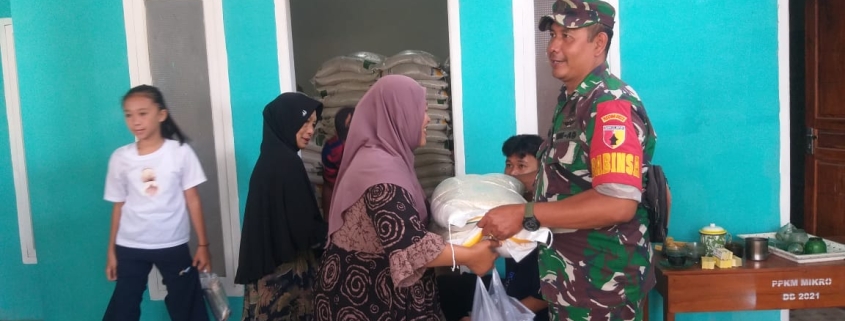 Babinsa Dampingi Penyaluran Bantuan Pangan Bulog di Desa Pejagan Bondowoso