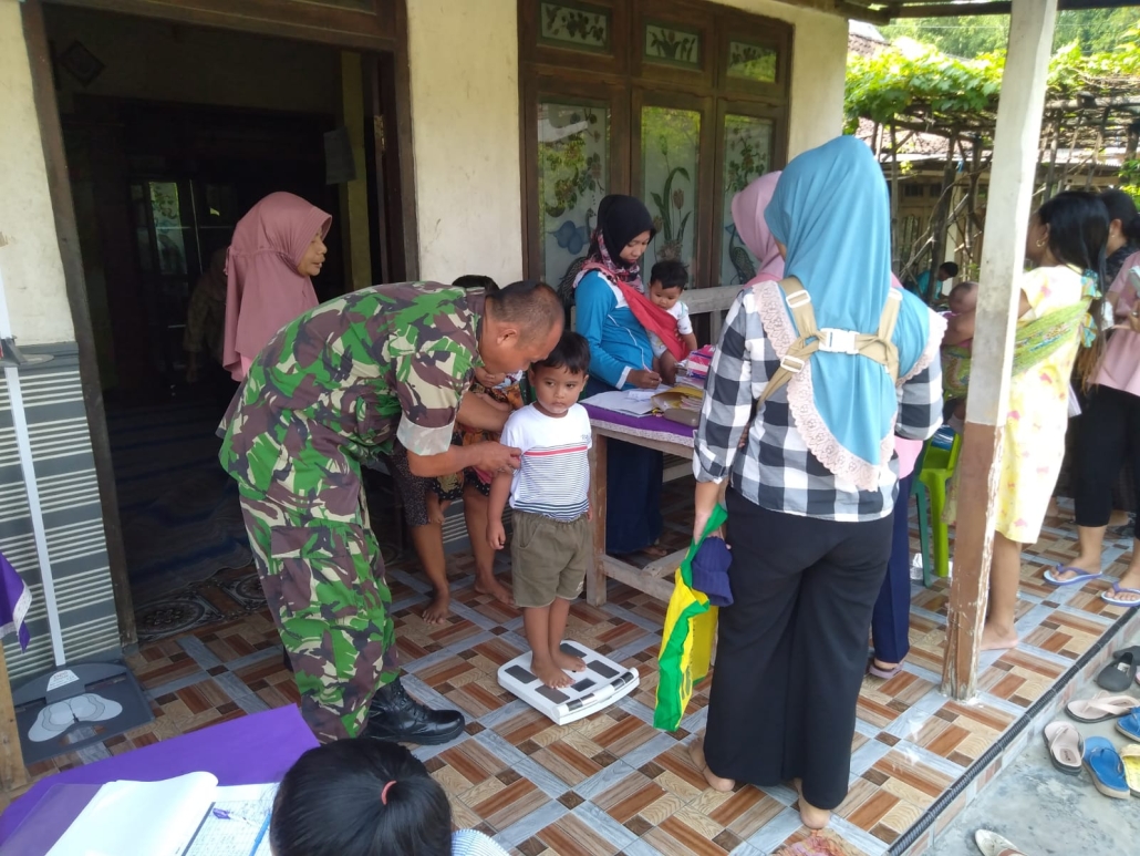 Jombang – Dalam rangka membangun Sinergitas dan kebersamaan pada kegiatan pelayanan Kesehatan masyarakat untuk mewujudkan generasi yang sehat,Babinsa mendampingi Petugas Kesehatan Puskesmas, Bidan Desa (Bindes) melaksanakan kegiatan Posyandu Balita dan Lansia. Kegiatan berlangsung di Ds.Sumberteguh Kec. Kudu Kabupaten Jombang.