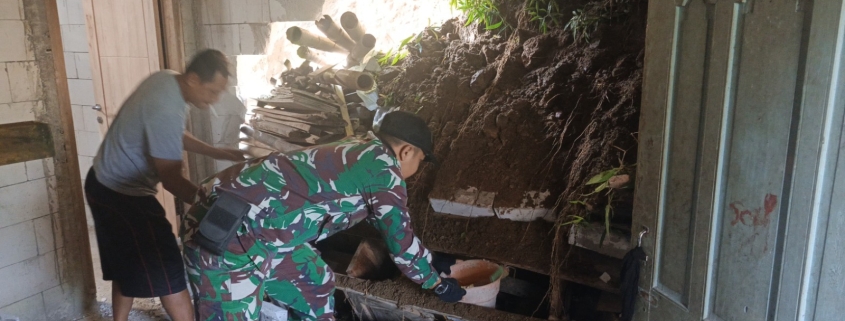 Tanpa menunda waktu, Babinsa Desa Nglebo, Serda Dhicky, bersama Bhabinkamtibmas Desa Nglebo, Brigadir Muh. Saiful Baktiar, langsung bergerak cepat ke lokasi. Dengan semangat gotong royong, mereka bersama warga sekitar bekerja keras membersihkan material longsoran yang menutupi rumah dan lingkungan sekitar.