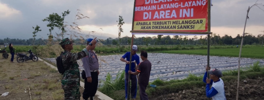 Babinsa dan Bhabinkamtibmas Tertibkan Aktivitas Layang-Layang untuk Lindungi Tanaman Padi di Bondowoso