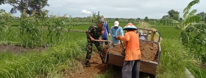 Babinsa dan Masyarakat Desa Tulung Kerja Sama Perbaiki Jalan Melalui Karya Bakti.