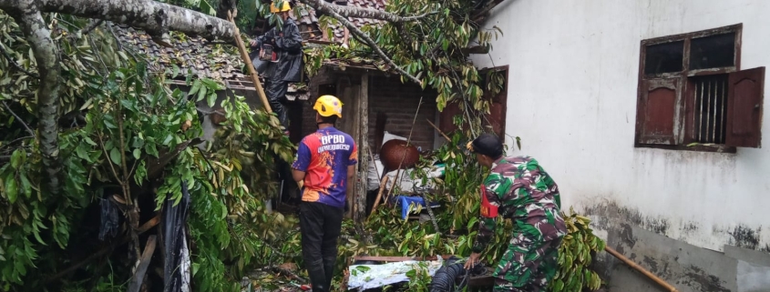 Babinsa dan Warga Evakuasi Pohon Tumbang Timpa Rumah di Kecamatan Pujer Bondowoso
