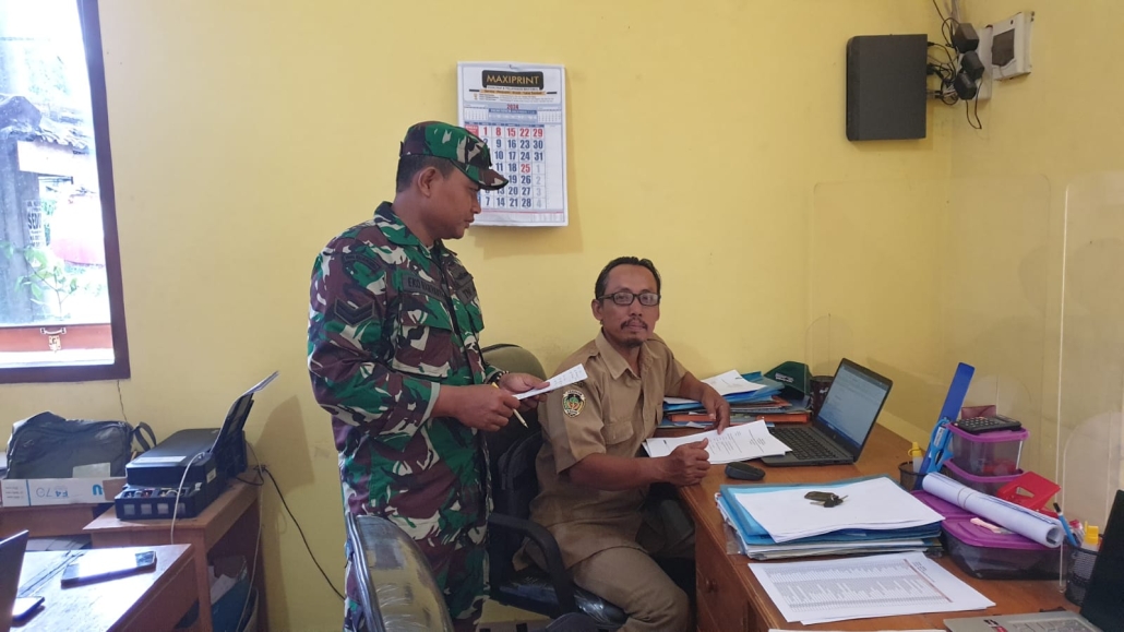 Madiun, – Babinsa Desa Bibrik, Koramil 0803/04 Jiwan, Sertu Eko, melaksanakan kegiatan Komunikasi Sosial (Komsos) dengan perangkat desa setempat, Bapak Minto, guna mendata warga yang sudah dan belum memiliki BPJS Kesehatan, Jumat (10/1). Kegiatan yang berlangsung di Balai Desa Bibrik ini bertujuan untuk memperbarui data warga sekaligus mendukung kelancaran program BPJS di bidang kesehatan.