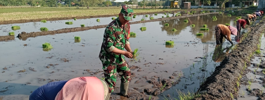 Babinsa Desa Dolopo Dampingi Petani Tanam Padi untuk Wujudkan Ketahanan Pangan