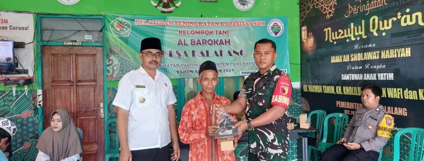 Pamekasan – Babinsa Desa Palalang, Koptu Abd Kholik, melaksanakan pendampingan peningkatan kapasitas pertanian bagi kelompok tani (Poktan) Suka Makmur, Poktan Al Barokah, Poktan Suka Maju dan Poktan Suka Tani di Balai Desa Palalang, Kecamatan Pakong pada Senin (30/12/2024).
