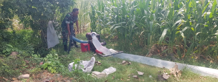 Jombang – Dalam rangka mendukung program ketahanan pangan nasional, Babinsa Koramil 0814-18/Jogoroto Serka Syaipul Amin melaksanakan pendampingan kepada petani di Desa Jarakkulon, Kecamatan Jogoroto, Kabupaten Jombang. Kegiatan ini dilakukan dengan membantu proses pengairan tanaman jagung di lahan milik petani binaan bersama PPL setempat. (Rabu, 15/10/2025)