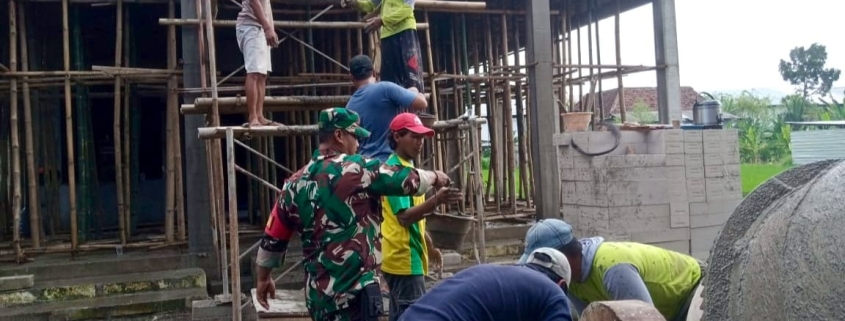 Pembangunan mushola berlangsung melalui kerja sama antara Babinsa dan warga setempat yang kompak mengangkut material bangunan serta melaksanakan pengecoran atap. Meski menggunakan peralatan sederhana, mereka tetap bersemangat menyelesaikan pekerjaan sebagai wujud dedikasi terhadap kebutuhan ibadah masyarakat.
