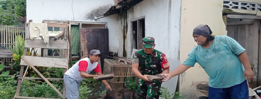 Babinsa Kanigoro Bantu Rehabilitasi Rumah Warga Kurang Mampu di Blitar