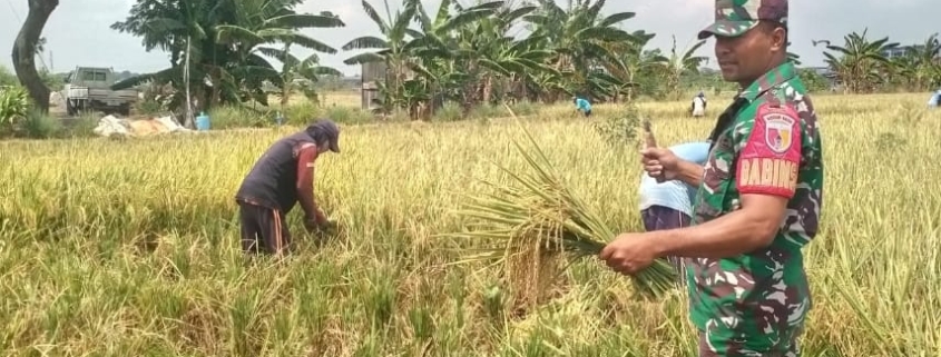 Babinsa Karangpilang Dampingi Petani Panen Padi Dukung Ketahanan Pangan Nasional