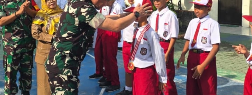 SURABAYA – Dalam rangka menumbuhkan semangat nasionalisme dan cinta tanah air sejak dini, Batituud Koramil 0830-19/Karangpilang Peltu Sugeng H bersama dua anggota Babinsa Kelurahan Babatan, Sertu Gunawan P. dan Serda Yoswan H., melaksanakan kegiatan Upacara Bendera serta penyampaian materi Wawasan Kebangsaan di SDN Babatan 1, Kecamatan Wiyung, Senin (20/10/2025).