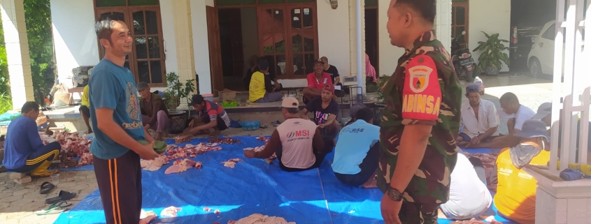 ” Aktivitas warga disaat saat hari Raya Idul Adha seperti ini salah satunya yaitu melakukan kegiatan keagamaan berupa penyembelihan hewan kurban dimana dalam pelaksanaannya kami juga aktif memonitor dan mendampingi warga, ” kata Serka Komari Rudianto.