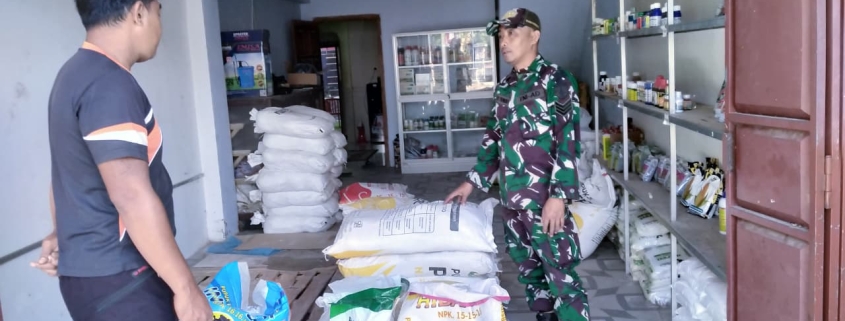 Ponorogo,- Guna meyakinkan ketersediaan pupuk bagi para petani, Bintara Pembina Desa (Babinsa) Kodim 0802/Ponorogo rajin melakukan monitoring atau pemantauan ke kios pupuk yang ada di wilayah desa binaan, Selasa (19/08/2025).