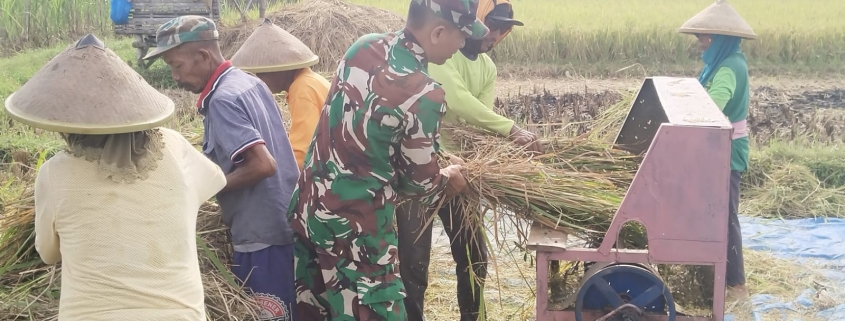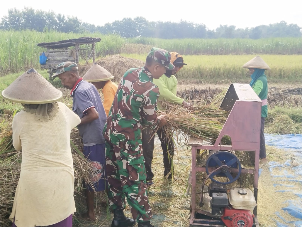 Babinsa Koramil 0804/10 Kawedanan Dukung Ketahanan Pangan dengan Bantu Petani Panen Padi