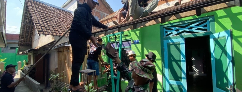 BLITAR – Babinsa Kelurahan Kepanjenkidul Koramil 0808/01 Sukorejo, Sertu Didik Subiantoro, bersama warga melaksanakan kegiatan gotong royong membantu renovasi rumah milik Bapak Subagio. Kegiatan tersebut berupa pembongkaran atap rumah yang berlokasi di Jl. Srigading RT 01 RW 02, Kelurahan Kepanjenkidul, Kecamatan Kepanjenkidul, Kota Blitar, Jumat (26/12/2025).