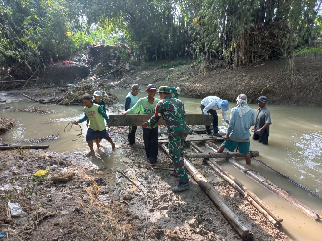 Lamongan,- Beberapa Babinsa Koramil 0812/08 Sambeng bersama masyarakat melaksanakan kegiatan kerja bakti perbaikan jembatan yang jebol akibat terjangan banjir Di Dusun Gondoroso Desa Kreteranggon Kecamatan Sambeng Kabupaten Lamongan, Senin (03/03/2025).