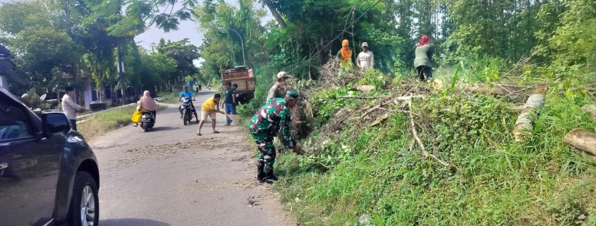 Menyikapi hal tersebut, Babinsa Kodim 0812/Lamongan, Koramil 0812/16 Laren, Sertu Gunawan membantu melaksanakan kerja bakti dan pengamanan kegiatan pemangkasan pohon lapuk yang rawan tumbang di Jalan poros Laren, Kecamatan Laren Kabupaten Lamongan, Senin (27/01/2025).