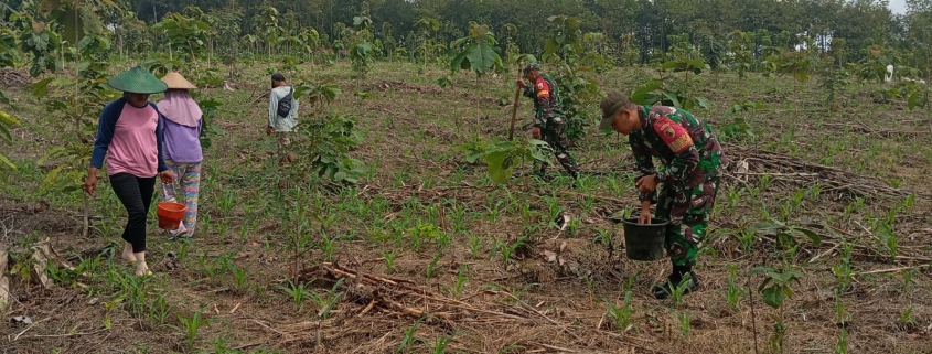 Jombang – Babinsa Koramil 0814/07 /Kabuh Kodim 0814 Jombang Serda Yuli Rianto melaksanakan Hanpangan membantu warga memupuk tanaman jagung milik bapak Imam di dusun marmoyo Desa Marmoyo Kec. Kabuh Kab. Jombang. Minggu 29/12/2024.