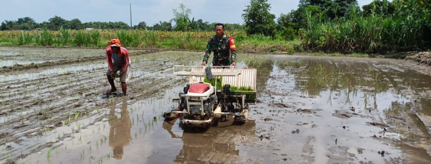 Babinsa Koramil 0814-11/Sumobito Bantu Penanaman Padi untuk Percepat Masa Tanam di Jombang