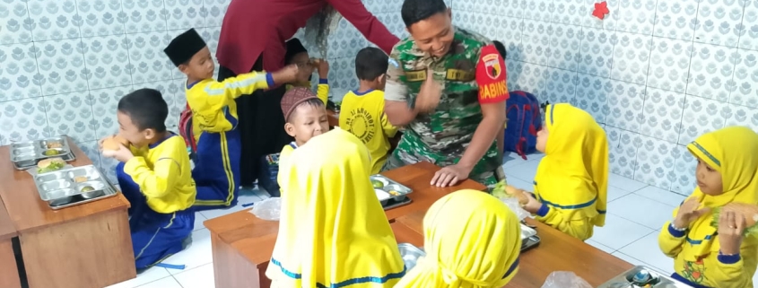 Babinsa yang hadir turut membaur dan membantu, menciptakan suasana nyaman bagi anak-anak. Senyum dan tawa kecil mereka menjadi bukti bahwa gizi yang baik, jika disertai perhatian dan kebersamaan, akan memberikan energi positif untuk masa depan mereka.