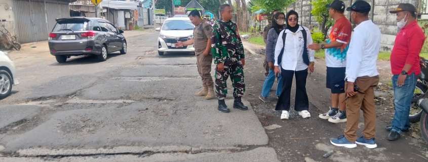 Sidoarjo – Babinsa Koramil 0816/09 Krian, Serka M. Mashuri, turut mendampingi inspeksi mendadak (sidak) yang dilakukan oleh Sekretaris Daerah (Sekda) Kabupaten Sidoarjo, Ibu Feny, dalam rangka meninjau kondisi akses jalan yang rusak di Kelurahan Krian, Kecamatan Krian, Kabupaten Sidoarjo.