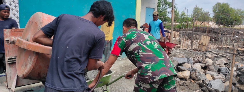 Babinsa Koramil 0817/06 Manyar dan Warga Bangun Dam untuk Cegah Banjir Rob di Gresik