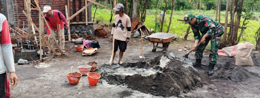 Babinsa Koramil 0820-10/Kuripan Bantu Pembangunan Rumah Warga di Desa Jatisari