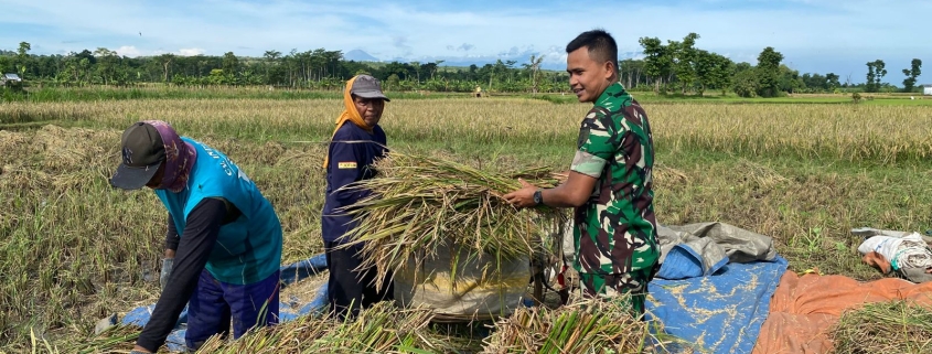 PROBOLINGGO – Sebagai wujud kedekatan TNI dengan masyarakat, khususnya para petani, Kopda Sahroni, Babinsa Koramil 0820-20/Banyuanyar, turut serta mendampingi kegiatan pemanenan padi milik Bapak Ahmadi dengan luas lahan sekitar 1.800 meter persegi di Dusun Kokon, Desa Liprak Wetan, Kecamatan Banyuanyar, Kabupaten Probolinggo.