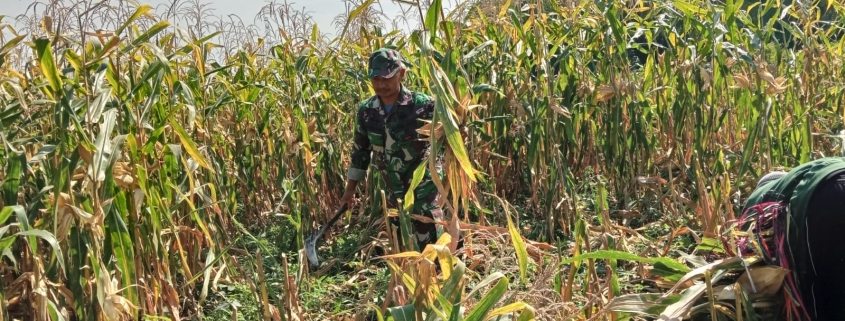 Babinsa Koramil 0820-20/Banyuanyar Dukung Ketahanan Pangan dengan Pendampingan Panen Jagung di Probolinggo