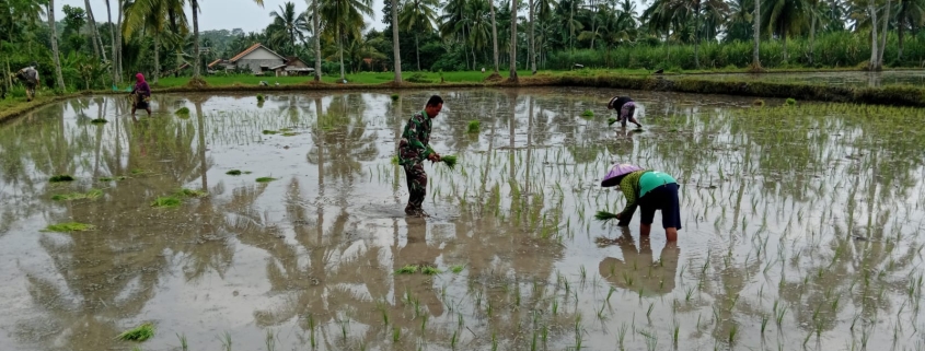 Probolinggo – Upaya mewujudkan ketahanan pangan terus dilakukan jajaran TNI melalui pendampingan kepada para petani di wilayah. Hal ini terlihat dari kegiatan yang dilakukan oleh Serma Masruji, Babinsa Koramil 0820-26/Tegalsiwalan, yang turut serta mendampingi penanaman padi di lahan milik Bapak Nurhasan seluas 350 meter persegi di Desa Banjarsawah, Kecamatan Tegalsiwalan, Kabupaten Probolinggo.