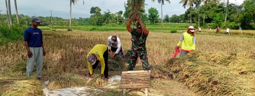 Babinsa Koramil 0822/08 Dampingi Panen Padi Varietas Inpari 32 di Desa Pekauman, Bondowoso