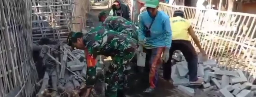 Babinsa Koramil 0823/05 Panarukan Bersama Warga Paving Jalan untuk Aksesibilitas Desa