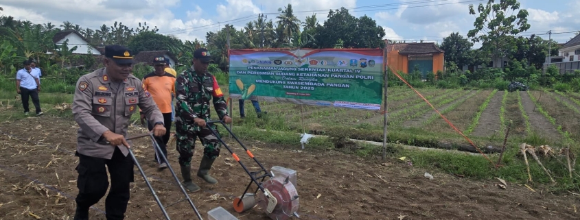Babinsa Koramil 0825-17/Muncar Dukung Ketahanan Pangan Lewat Penanaman Jagung Serentak di Banyuwangi